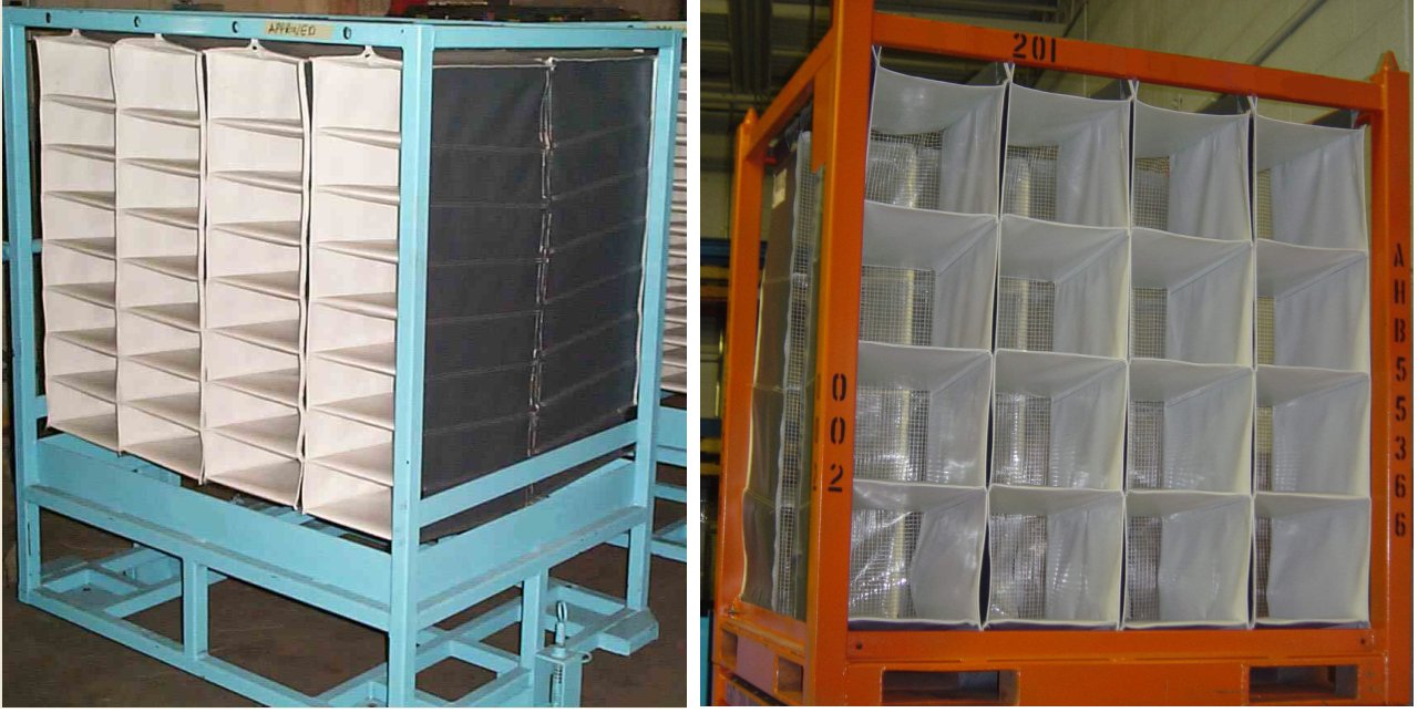 corrugated plastic packs, dunnage bags, form fitting foam and metal profiles